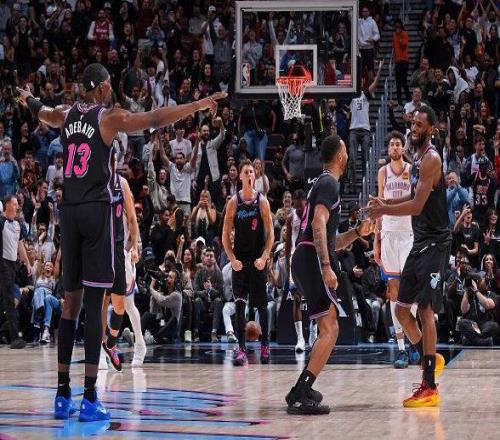 下半场比赛开始,易边再战,切特中距离急停干拔两分落袋,揭开第三节比赛序幕,维金斯空切篮下,飞身上篮同样也有,亚历山大横冲直撞,转身上篮抛投打进,阿德巴约制霸篮下,翻江倒海,蜻蜓点水补篮命中,卡鲁索变向突破如狼似虎,冲击内线擦板得分。到第三节,雷霆虽然大部分时间保持微弱优势但没能顶住,热火依靠韦尔的补篮和约维奇的两罚一中抹平比分进入末节决战,三节比赛打完,雷霆95-95打平热火。末节决战,场面进入僵持阶段,热火也多次反超比分将悬念拖入到最后时刻,读秒阶段威金斯站出来轰进反超三分,雷霆则连续错失反绝杀。最终,热火主场122-120力克雷霆拿下比赛。
