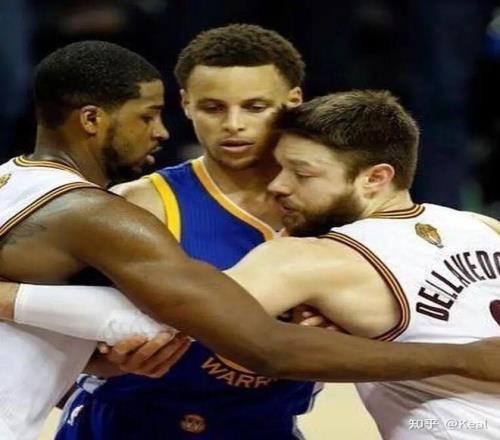 拉拽推抱都无法形容库里面对的防守,只能说观感上,库里更像是每时每刻身上都挂了不止一个人在打球。
